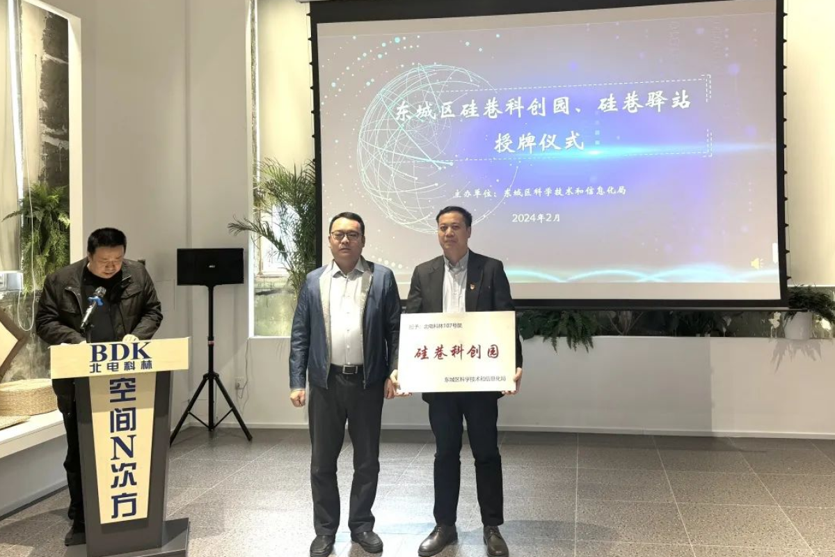 东城区硅巷科创园授牌仪式,由东城区科信局技术和信息化局主办,北电科林107号院承办,于2024年2月28日14:30,在北电科林107号院B101“空间N次方”举行。由区科信局党组书记、局长魏搏颁发,北京北电科林电子有限公司总经理朱旭东代表公司接牌。